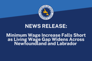 NEWS RELEASE: Minimum Wage Increase Falls Short as Living Wage Gap Widens Across Newfoundland and Labrador