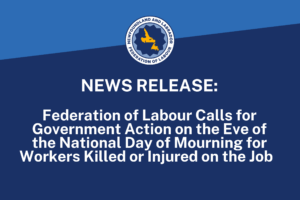 Federation of Labour Calls for Government Action on the Eve of the National Day of Mourning for Workers Killed or Injured on the Job